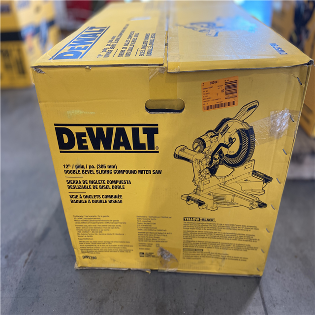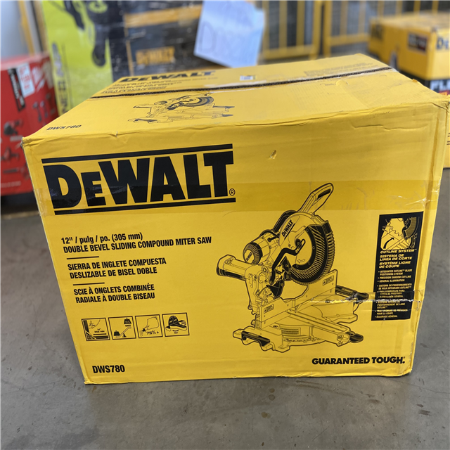 AS-IS - DEWALT 15 Amp Corded 12 in. Double Bevel Sliding Compound Miter Saw with XPS technology Blade Wrench and Material Clamp