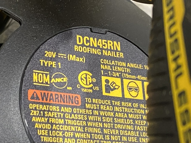 AS-IS DEWALT 20V MAX 15-Degree Electric Cordless Roofing Nailer (Tool Only)