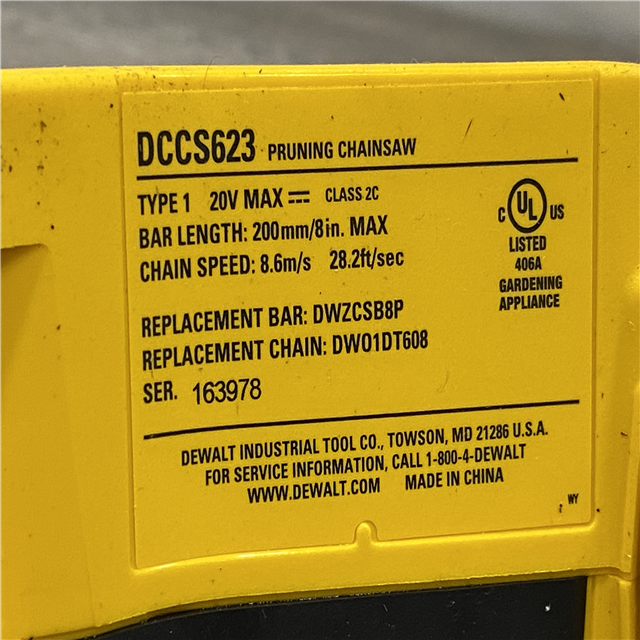 AS-IS DEWALT 20V MAX 8 in. Brushless Cordless Battery Powered Pruning Chainsaw (Tool Only)