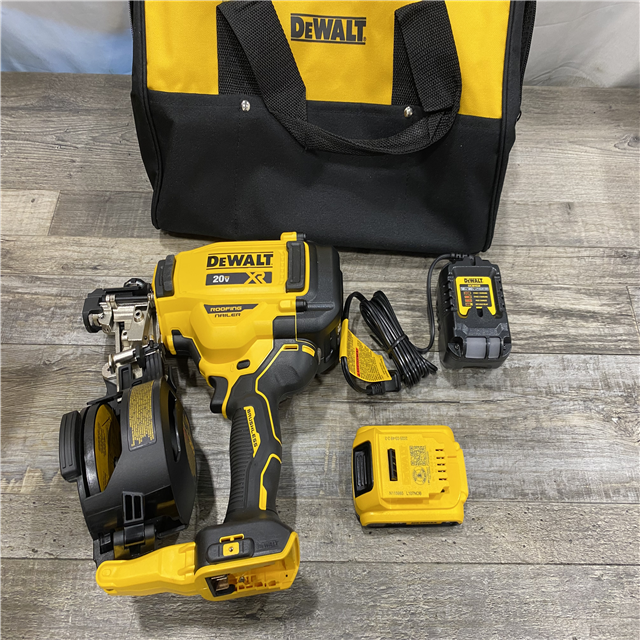 AS-IS DEWALT 20V MAX Lithium-Ion 15-Degree Electric Cordless Roofing Nailer Kit