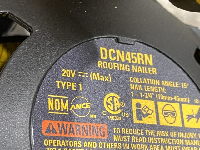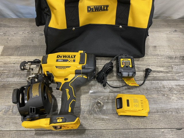 AS-IS DEWALT 20V MAX Lithium-Ion 15-Degree Electric Cordless Roofing Nailer Kit