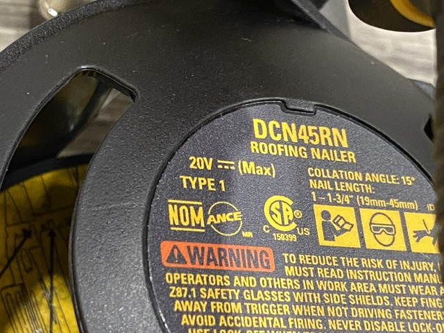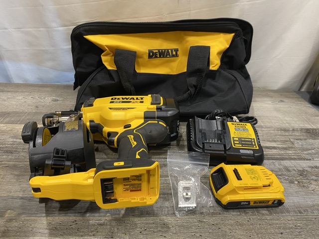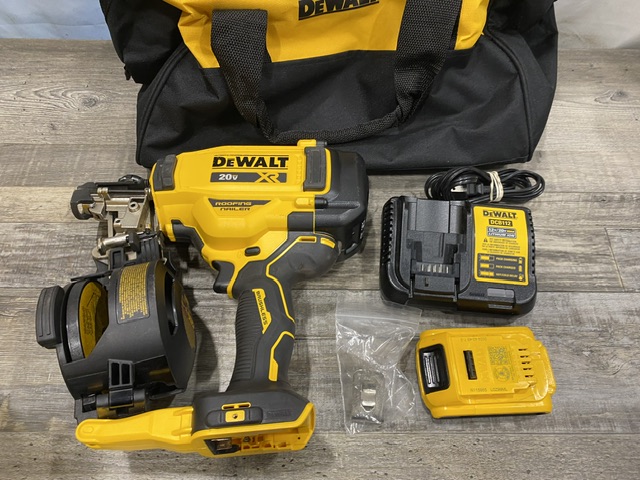 AS-IS DEWALT 20V MAX Lithium-Ion 15-Degree Electric Cordless Roofing Nailer Kit