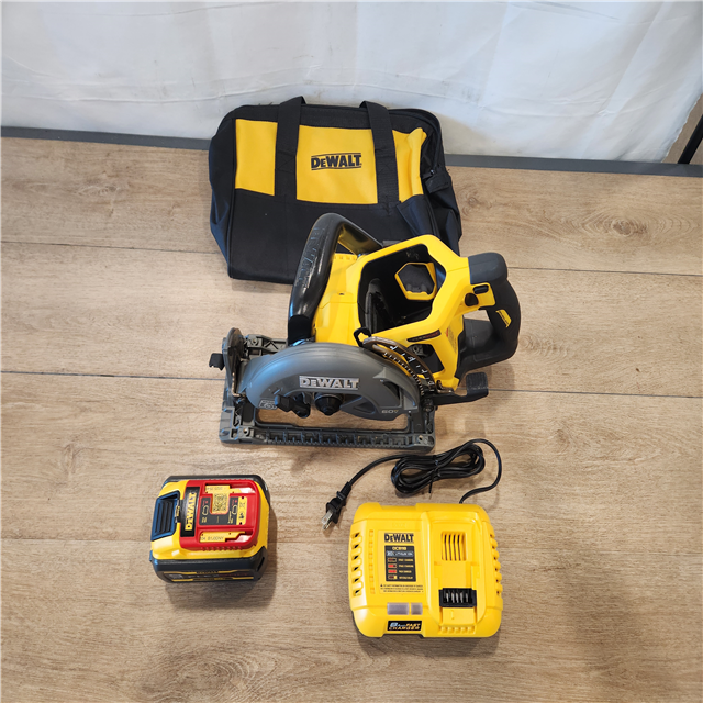 AS-IS- DEWALT 60V FLEXVOLT MAX Lithium-Ion 7-1/4 Brushless Cordless Wormdrive Style Circular Saw Kit 9.0 Ah
