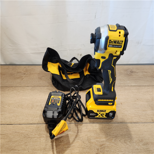 AS-IS- DEWALT ATOMIC 20V MAX Lithium-Ion Cordless 1/4 in. Brushless Impact Driver Kit 5 Ah Battery Charger and Bag