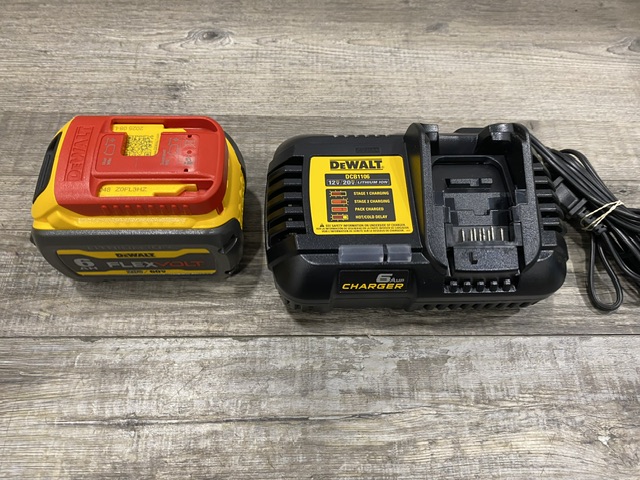 AS-IS DEWALT FLEXVOLT 20V/60V MAX Lithium-Ion 6.0Ah Battery Pack with 6 Amp Output Charger