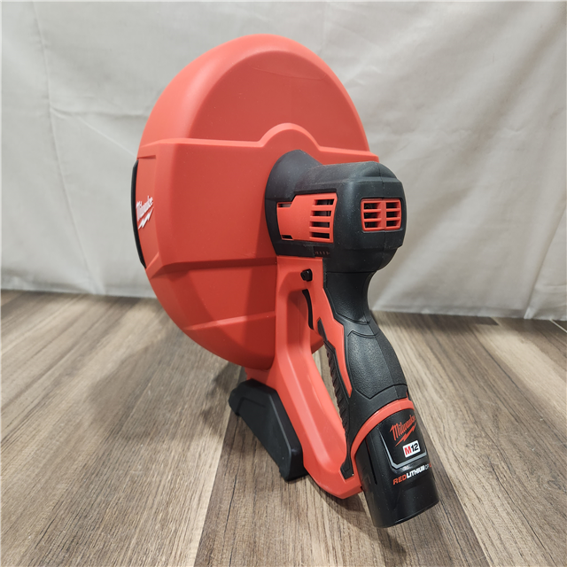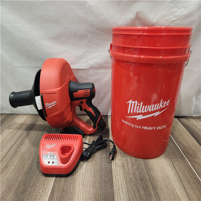 AS-IS- M12 12-V Lithium-Ion Cordless Drain Snake Auger W/ (1) 1.5Ah Battery 5/16 in. X 25 Ft. Cable Charger & 5 Gal. Bucket
