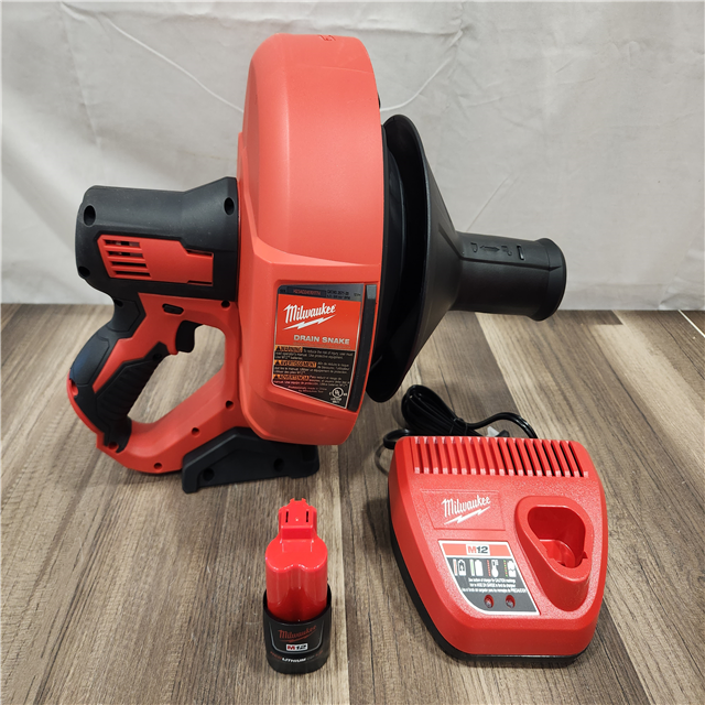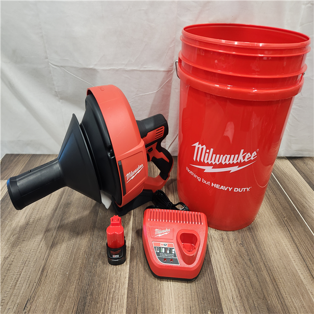 AS-IS- M12 12-V Lithium-Ion Cordless Drain Snake Auger W/ (1) 1.5Ah Battery 5/16 in. X 25 Ft. Cable Charger & 5 Gal. Bucket