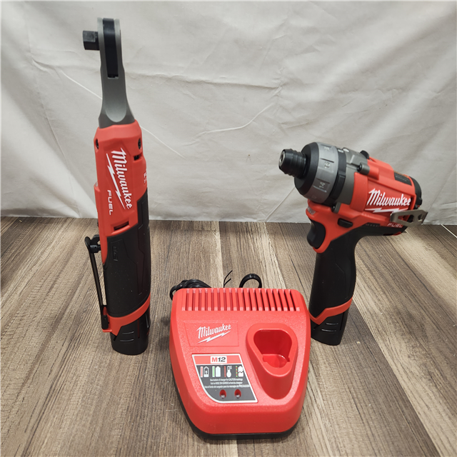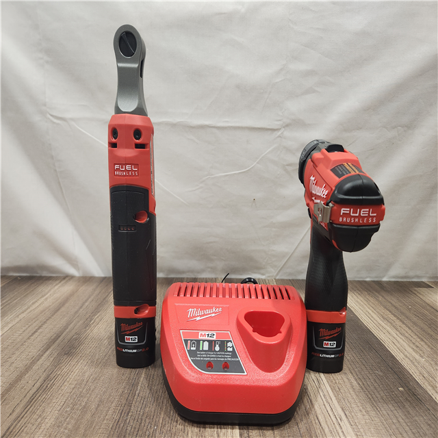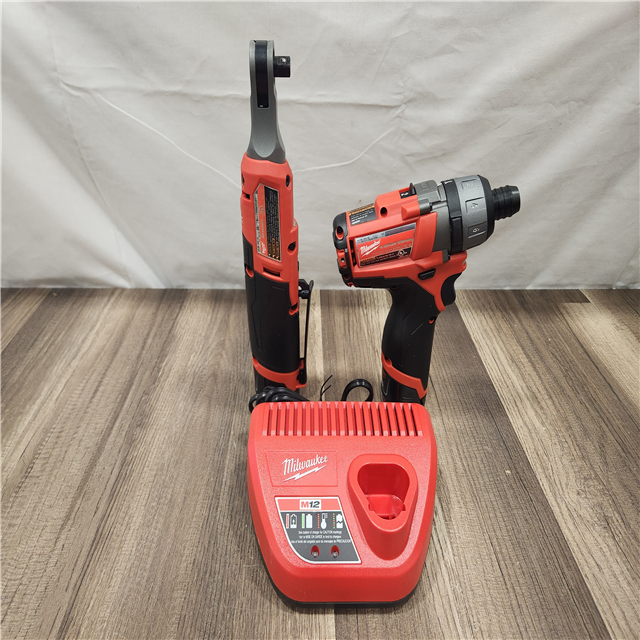 AS-IS- - M12 12V Lithium-Ion Cordless Screwdriver 3/8 in. High Speed Ratchet Light Combo Kit (2-Tool) W/ 2 Batteries & Charger