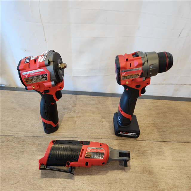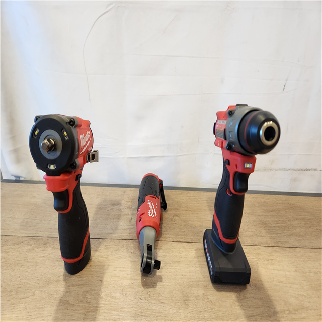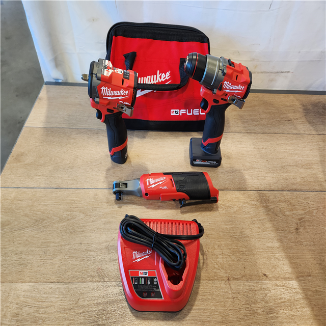 AS-IS- M12 FUEL 12V Lithium-Ion Cordless Drill Driver Impact Wrench and Ratchet Combo Kit (3-Tool) W/Batteries Charger & Bag