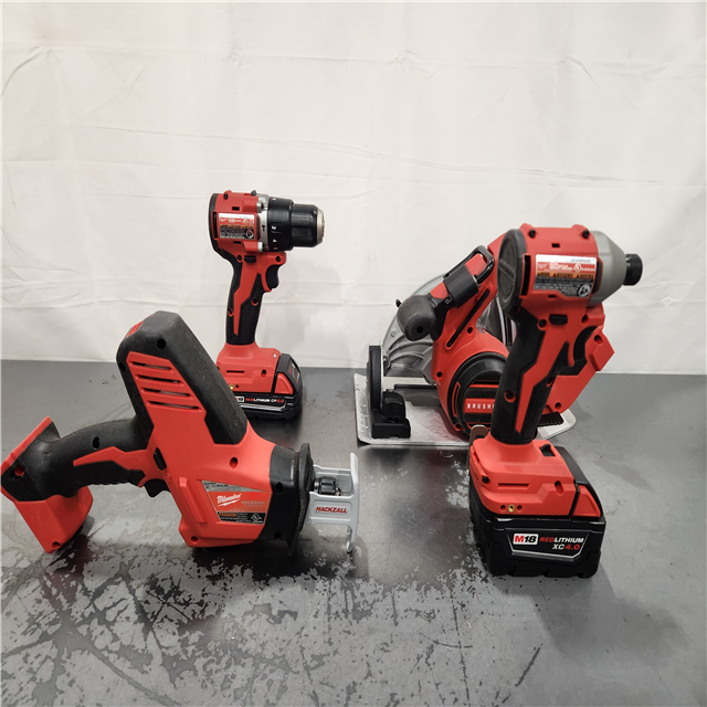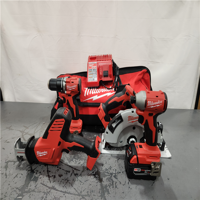 AS-IS- M18 18-Volt Lithium-Ion Brushless Cordless Combo Kit (4-Tool) with 2-Batteries 1-Charger and Tool Bag