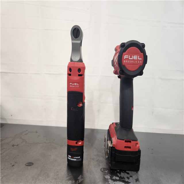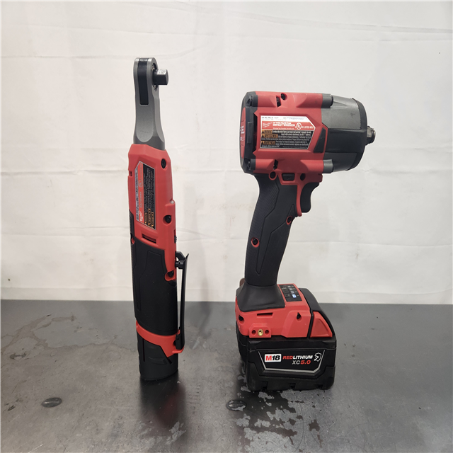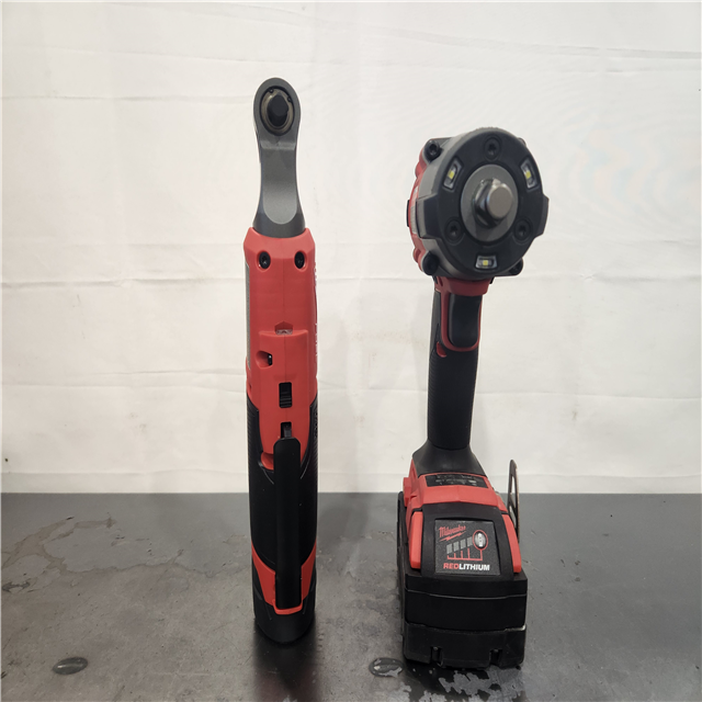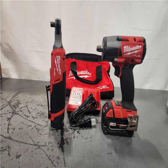 AS-IS- M18 FUEL 18V Cordless Mid Torque 1/2 in. Impact Wrench W/ M12 FUEL 3/8 in. Ratchet & Battery/Charger Combo Kit