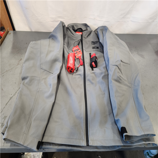 AS-IS- Men's 2X-Large M12 12V Lithium-Ion Cordless TOUGHSHELL Gray Heated Jacket with (1) 3.0 Ah Battery and Charger