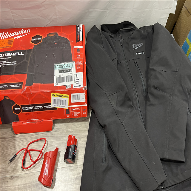 AS-IS Men's Large M12 12-Volt Lithium-Ion Cordless Tough Shell Black Heated Jacket with (1) 3.0 Ah Battery and Charger
