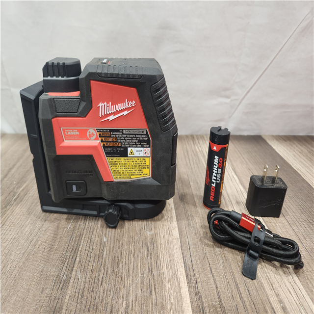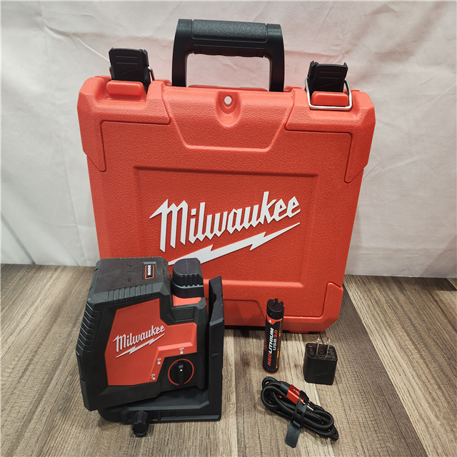 AS-IS- MILWAUKEE 100 Ft. REDLITHIUM Lithium-Ion USB Green Rechargeable Cross Line Laser Level with Charger