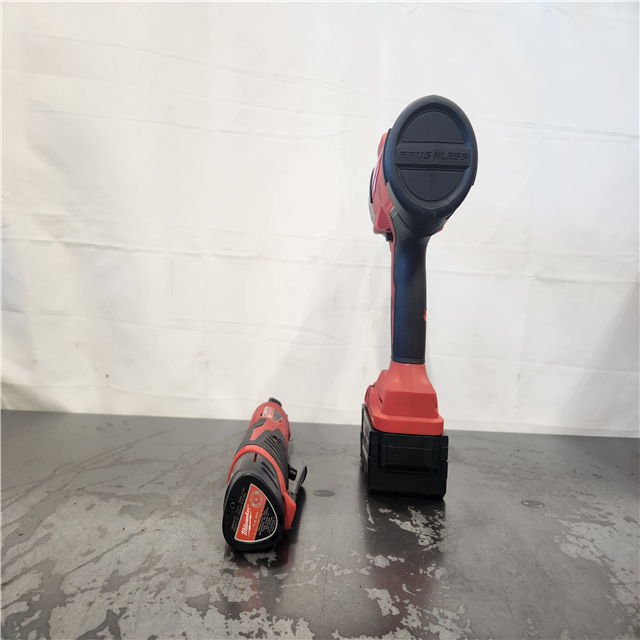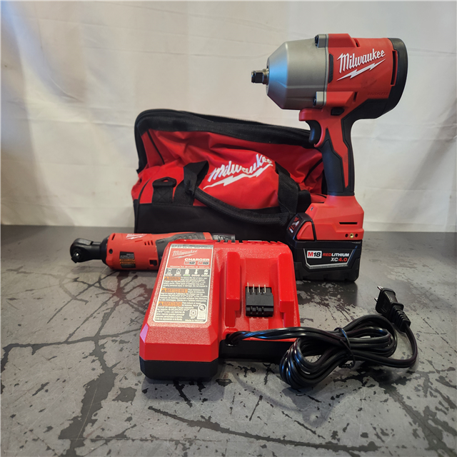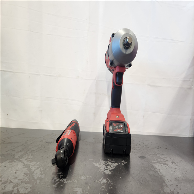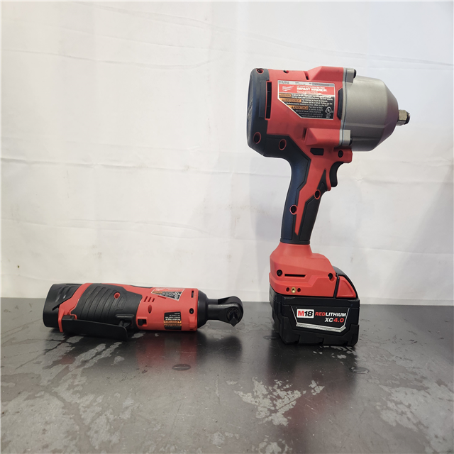 AS-IS- Milwaukee 12/18V Lithium-Ion Cordless 3/8 in. Ratchet and 1/2 in. High Torque Impact Wrench with Friction Ring Combo Kit