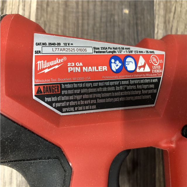 AS-IS Milwaukee 12-Volt 23-Gauge Lithium-Ion Cordless Pin Nailer (Tool-Only)