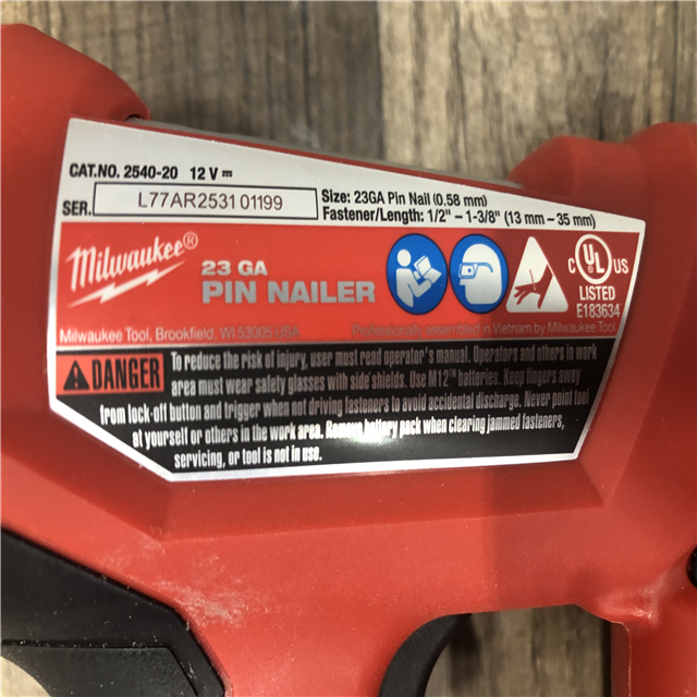 AS-IS Milwaukee 12-Volt 23-Gauge Lithium-Ion Cordless Pin Nailer (Tool-Only)
