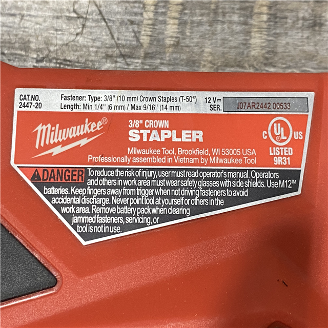 AS-IS Milwaukee 12-Volt Lithium-Ion Cordless 3/8 in. Crown Stapler (Tool-Only)