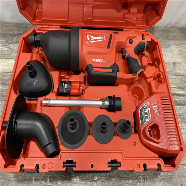 AS-IS Milwaukee 12-Volt Lithium-Ion Cordless Drain Cleaning Airsnake Air Gun Kit