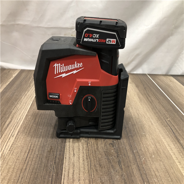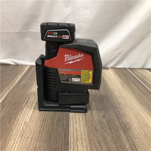AS-IS Milwaukee 12-Volt Lithium-Ion Cordless Green 125 ft. Cross Line and Plumb Points Laser Level Kit