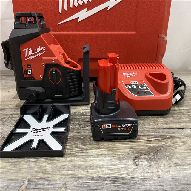 AS-IS Milwaukee 12-Volt Lithium-Ion Cordless Green 250 ft. 3-Plane Laser Level Kit