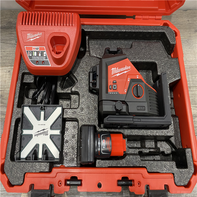 AS-IS Milwaukee 12-Volt Lithium-Ion Cordless Green 250 ft. 3-Plane Laser Level Kit