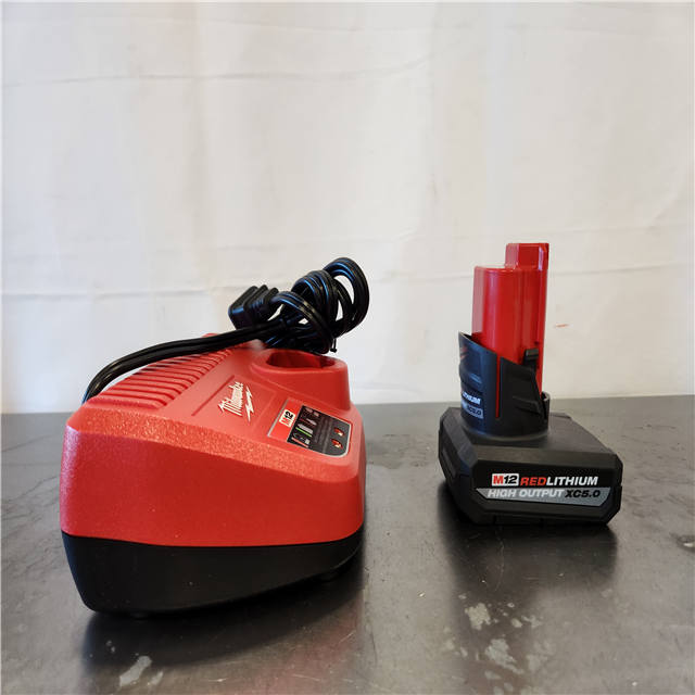 AS-IS- Milwaukee 12-Volt Lithium-Ion XC High Output 5.0 Ah Battery Pack with Charger Starter Kit