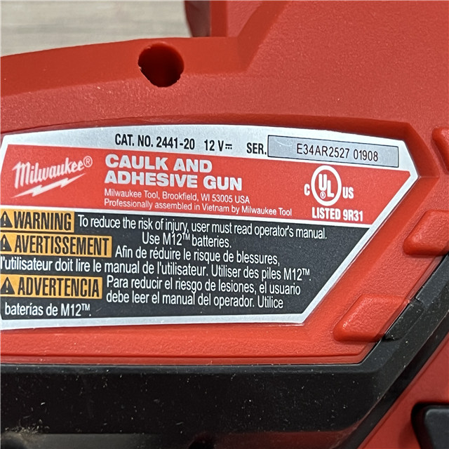 AS-IS Milwaukee 12V Lithium-Ion Cordless 10 oz. Adhesive and Caulk Gun (Tool-Only)