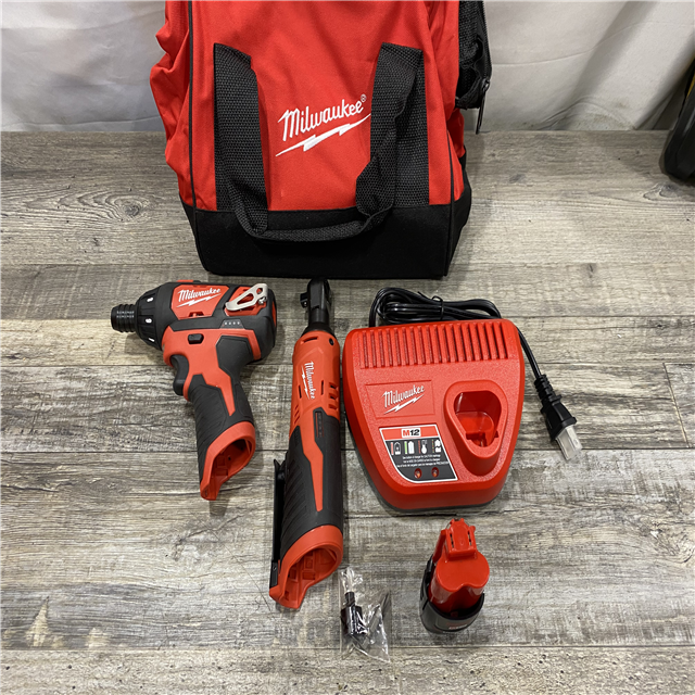 AS-IS Milwaukee 12V Lithium-Ion Cordless 3/8 in. Ratchet and Screwdriver Combo Kit