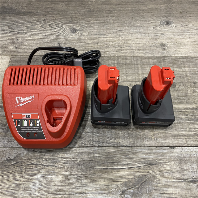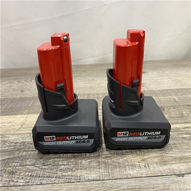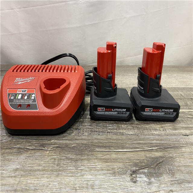 AS-IS Milwaukee 12V Lithium-Ion XC High Output 5.0 Ah Battery Pack (2-Pack) Starter Kit with Charger