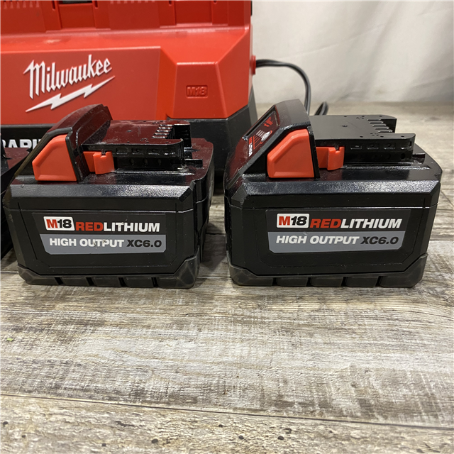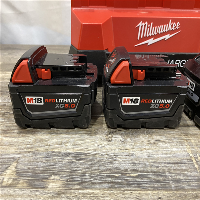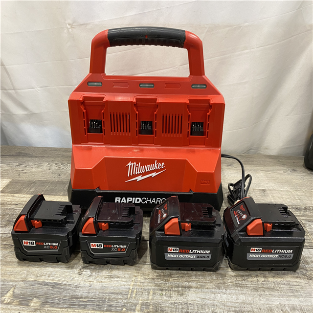 AS-IS Milwaukee 18-Volt Lithium-Ion Battery Pack (2) 5.0Ah and High Output Battery Pack (2) 6.0Ah with PACKOUT 6-Port Rapid Charger