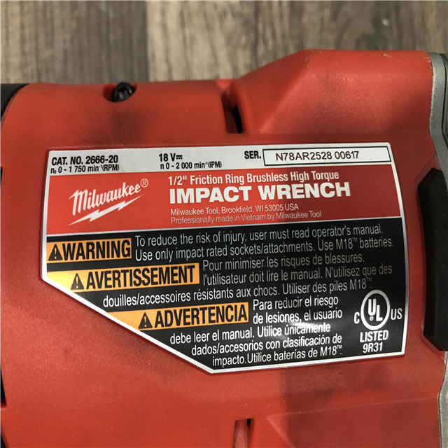 AS-IS Milwaukee 18-Volt Lithium-Ion Brushless 1/2 in. High Torque Impact Wrench with Friction Ring (Tool-Only)