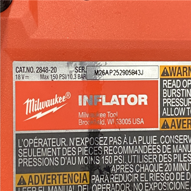 AS-IS Milwaukee 18-Volt Lithium-Ion Cordless Electric Portable Inflator (Tool-Only)
