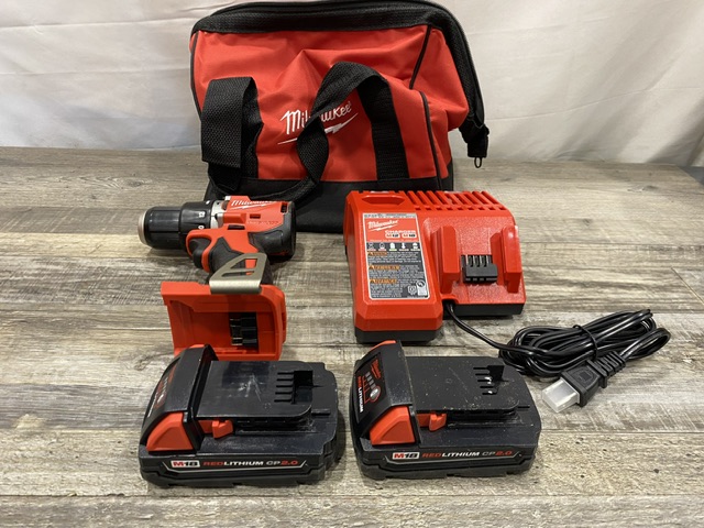 AS-IS Milwaukee 18V Lithium-Ion Brushless Cordless 1/2 in. Compact Hammer Drill/Driver Kit