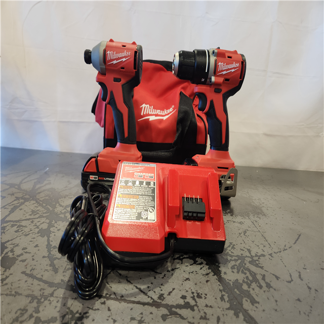 AS-IS- Milwaukee 18V Lithium-Ion Brushless Cordless Compact Drill/Impact Combo Kit