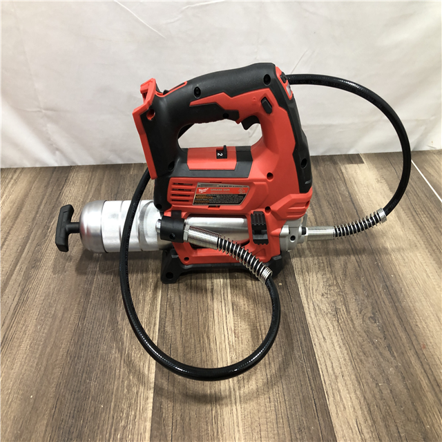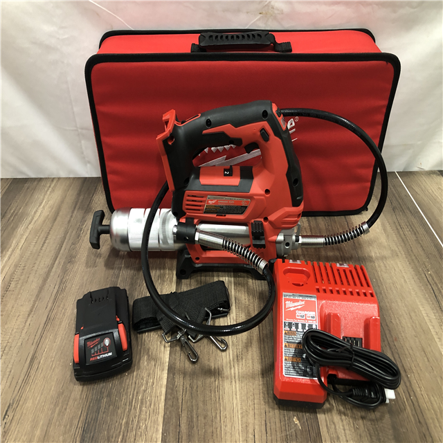 AS-IS Milwaukee 18V Lithium-Ion Cordless Grease Gun 2-Speed with (1) 1.5Ah Batteries Charger Tool Bag