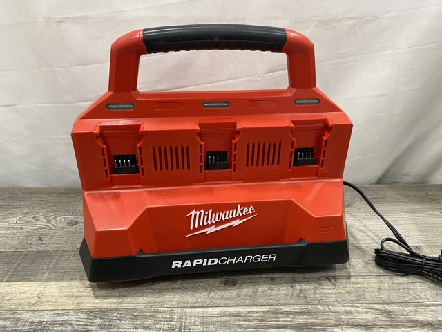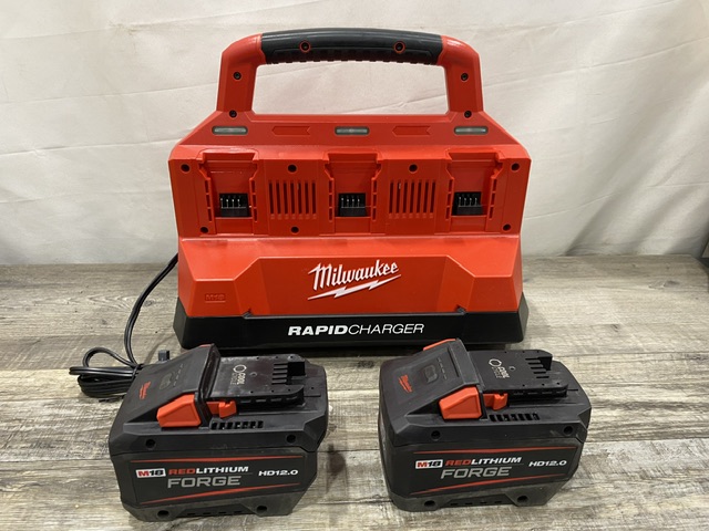 AS-IS Milwaukee 18V Lithium-Ion REDLITHIUM FORGE Starter Kit with (2) 12.0 Ah Battery Pack and PACKOUT 6-Port Rapid Charger