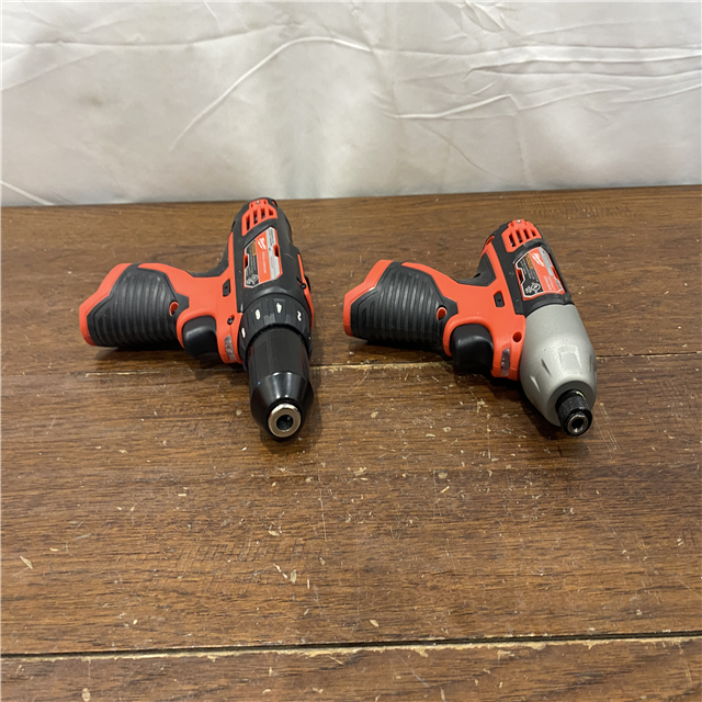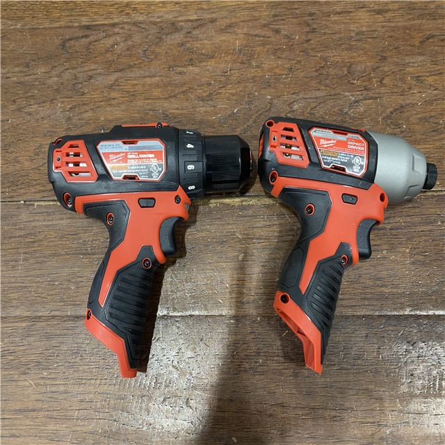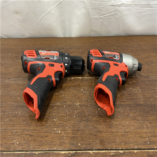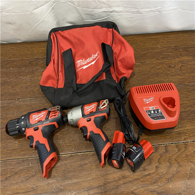 AS-IS Milwaukee 2494-22 M12 Cordless Combination 3/8 Drill / Driver and 1/4 Hex Impact Driver Dual Power Tool Kit (2 Lithium Ion Batteries Charger and B