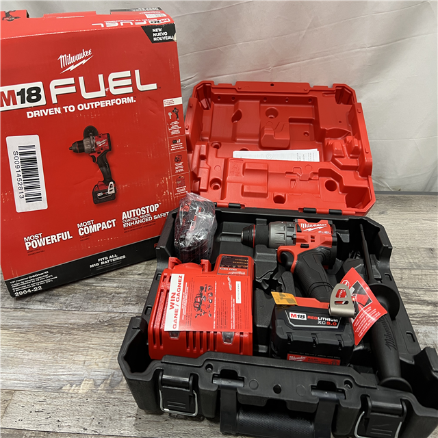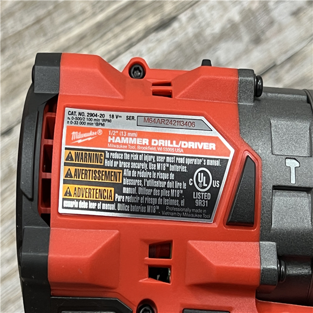 AS-IS Milwaukee 2904-22 Hammer Drill Driver Kit with Batteries Charger & Tool Case Red