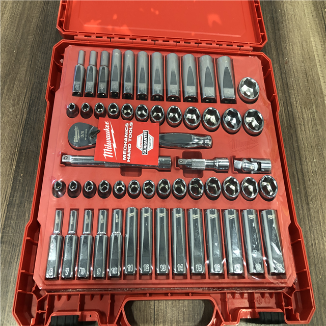 AS-IS Milwaukee 3/8 in. Drive SAE/Metric Ratchet and Socket Mechanics Tool Set (56-Piece)