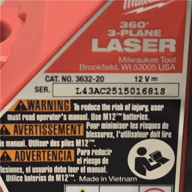 AS-IS Milwaukee-3632-21 M12 Green Beam Laser 360° 3-Plane Kit
