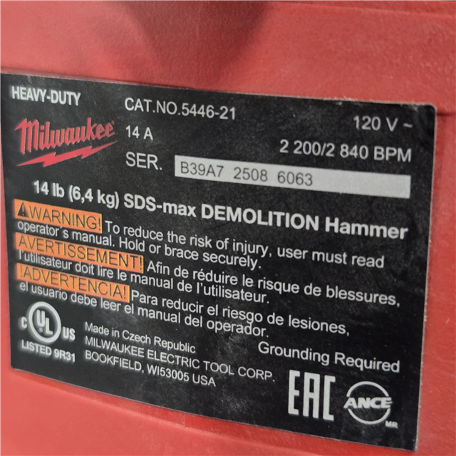 AS-IS Milwaukee 5446-21 SDS MAX Demolition Hammer