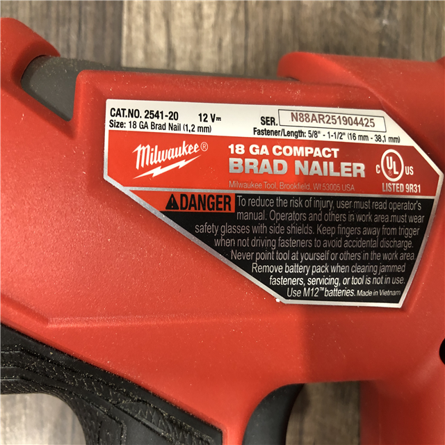 AS-IS Milwaukee FUEL 12-Volt Lithium-Ion Brushless Cordless 18-Gauge 1-1/2 in. Compact Brad Nailer (Tool Only)