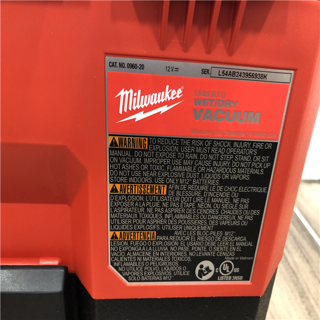 AS-IS Milwaukee FUEL 12-Volt Lithium-Ion Cordless 1.6 Gal. Wet/Dry Vacuum (Vacuum-Only)