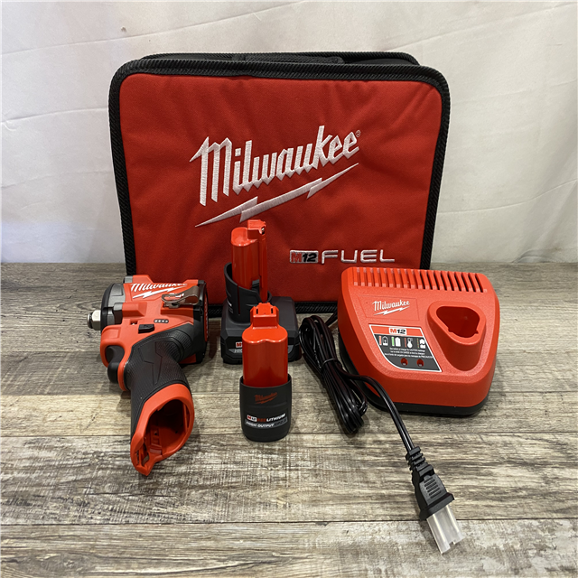 AS-IS Milwaukee FUEL 12V Li-Ion Brushless Cordless Stubby 1/2 in. Impact Wrench Kit