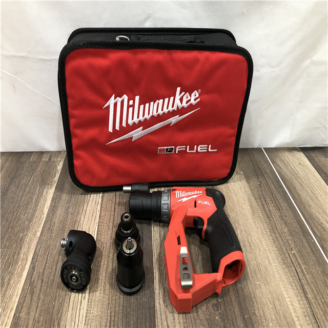 AS-IS Milwaukee FUEL 12V Lithium-Ion Brushless Cordless 4-in-1 Installation 3/8 in. Drill Driver with 4 Tool Head (Tool-Only)