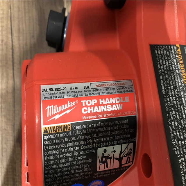 AS-IS Milwaukee FUEL 14 in. 18V Lithium-Ion Brushless Cordless Battery Top Handle Chainsaw (Tool Only)