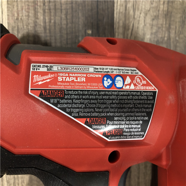 AS-IS Milwaukee FUEL 18-Volt Lithium-Ion Brushless Cordless 18-Gauge 1/4 in. Narrow Crown Stapler (Tool-Only)