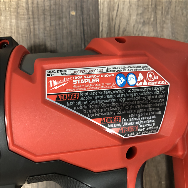 AS-IS Milwaukee FUEL 18-Volt Lithium-Ion Brushless Cordless 18-Gauge 1/4 in. Narrow Crown Stapler (Tool-Only)