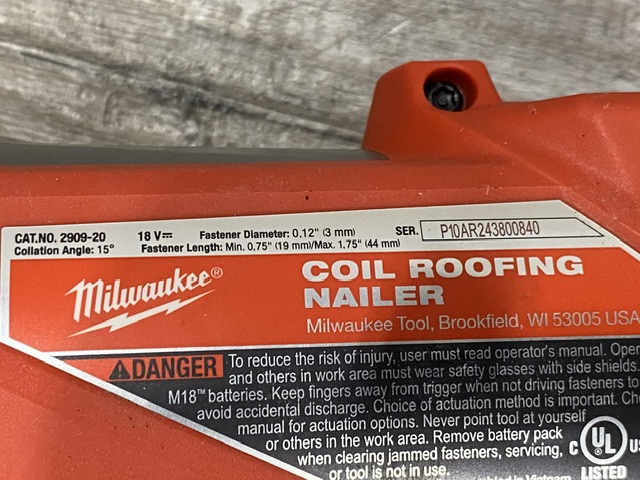 AS-IS Milwaukee FUEL 18-Volt Lithium-Ion Brushless Cordless Coil Roofing Nailer (Tool Only)